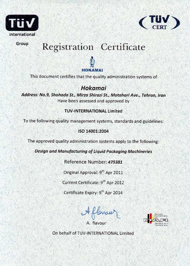 • Certificate in accordance with ISO 14001: 2004 (Environmental Management System) from Tuff International