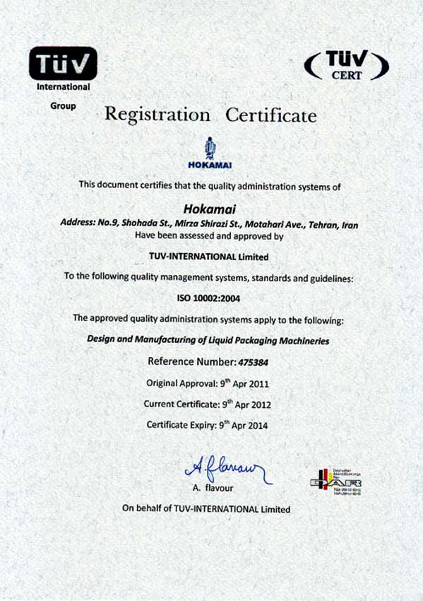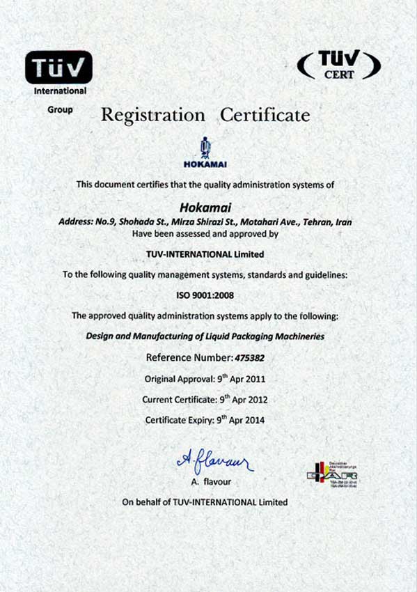 • Certification in accordance with the ISO 9001: 2008 (Quality Management System) standard from Tuff International in 1990